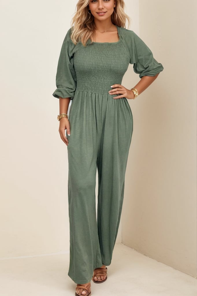 2024 New Square Neckline Jumpsuit with Smocked Bodice Button (Buy 2 Free Shipping)