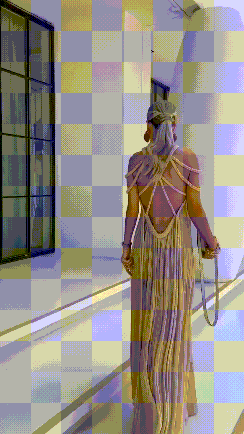 Modern and Sophisticated Linen Blend Draped Braids Cover Up Maxi Dress (Buy 2 Free Shipping)