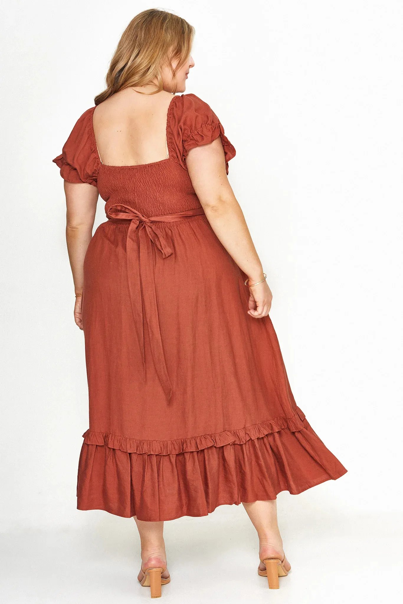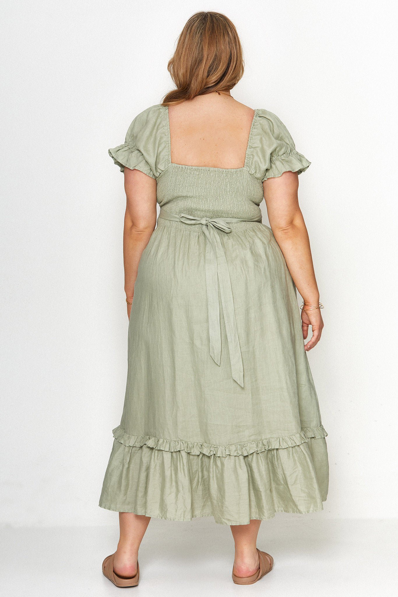 Elasticated shirring for the perfect fit and beautiful A-line skirt that sits. The top is a gorgeous puffy sleeve and the hem is a sweet ruffle design. We love how the ruffles hem gently flutters as you walk.